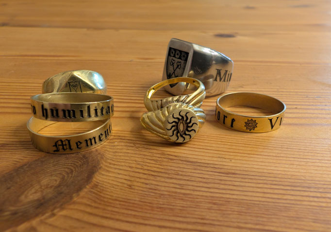 Ob aufgehübschte Kaufwaren, gravierte Ringe und Abzeichen, Schmuck, Holzwaren, Lederwaren oder 3D-Drucke – hier zeigen wir dir eine Auswahl dessen, was in der Manufaktur Gassenhauer bereits entstanden ist.